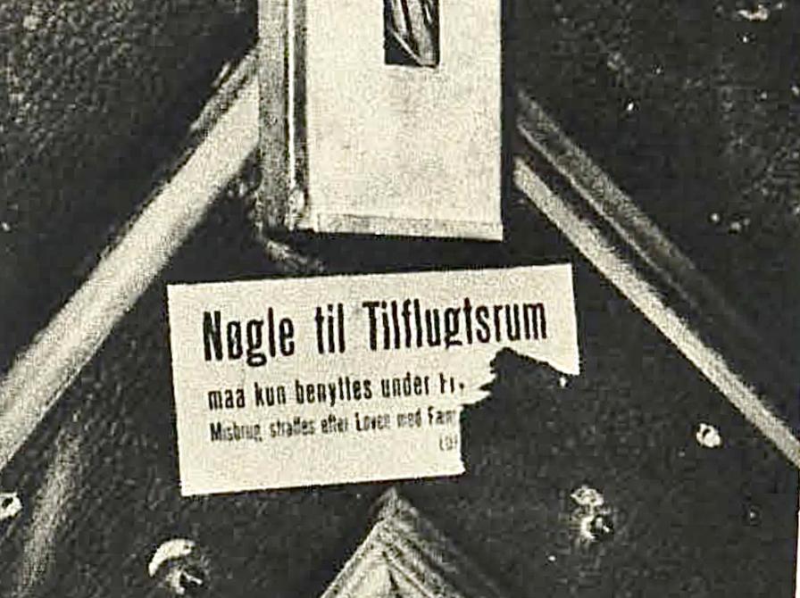 "Siden Rundetaarn blev Tilflugtsrum, har Nøglen hængt udvendigt paa Døren, parat til i en given Situation at aabne for beskyttelsessøgende Borgere. Men letsindige Hænder, som hverken tog deres eget eller Rundetaarns Samfundssind alvorligt, fjernede den Gang paa Gang. Saa maatte Nøglen selv søge ind i et lille Tilflugtsrum af Metal med Glasrude i og Magistratens Laksegl paa."
