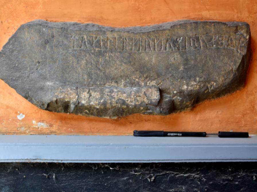 Lund-sten 2 med indskriften: "Toke lod gøre kirken og..."