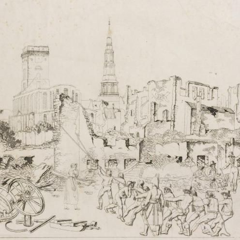 Thomas Overskou var 9 år, da englænderne i september 1807 bombarderede København og skyd til måls efter Vor Frue Kirkes 120 meter høje spir. Et øjenvidne berettede: