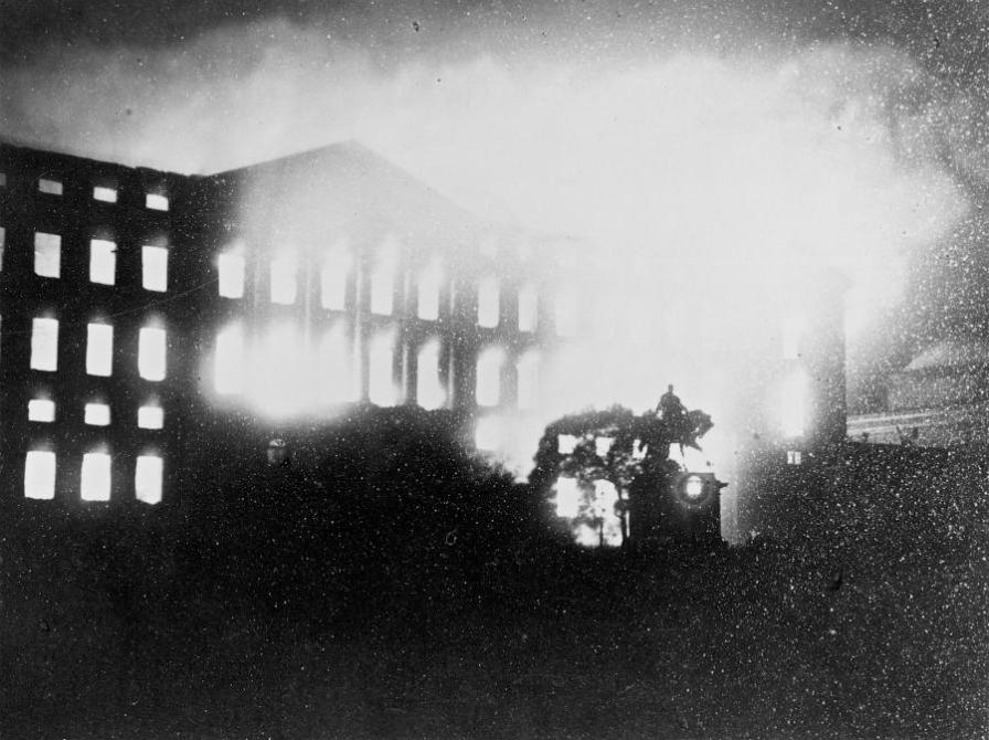 sydende Hoved. […] Dagen, der kommer, vil vise en forkullet, takket Ruin. Det var Kristiansborg."