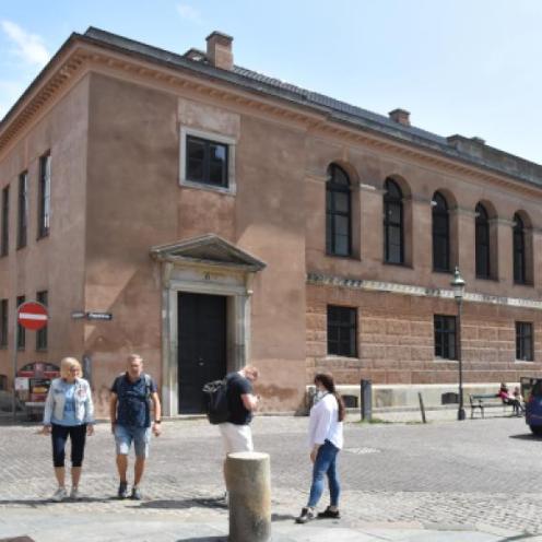 På ydersiden af muren ses en mindeplade med teksten: "LUDVIG HOLBERG / HAVDE HER SIN EMBEDSBOLIG / SOM PROFESSOR VED UNIVERSITETET / FRA DEN 21de JUNI 1740 / INDTIL SIN DØDSDAG DEN 28de JANUAR 1754".