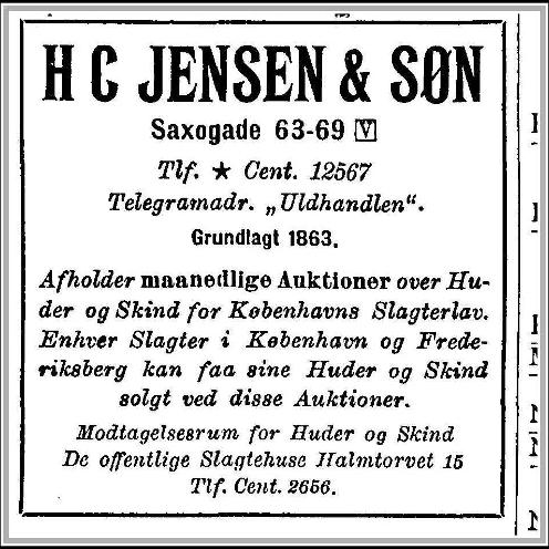 Ved bladring i KRAK-vejvisere fandt jeg en grosserer H. C. Jensen, Saxogade 63-69, som havde et stort firma med salg af huder og skind. Hvilken tilknytning kunne denne mand eventuelt have til Utterslev Mark?