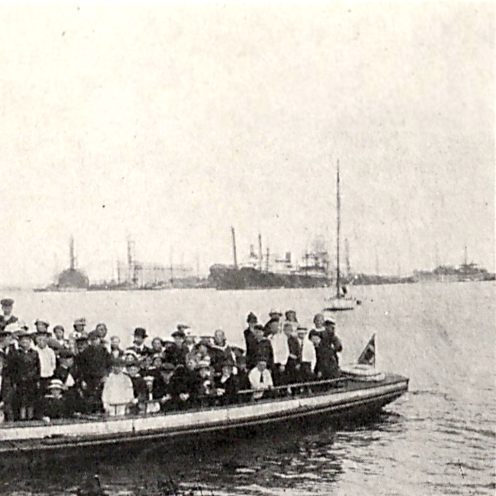 Her er provinsbørnene på Kanalrundfart. Mon ikke det er Holmen i baggrunden?