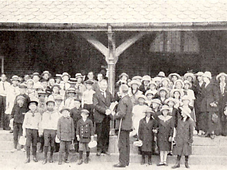 Så de afbildede provinsbørn må være ankommet med Slangerup-banen. Den blev åbnet i 1906 og forløb indtil Farum ad den nuværende s-bane. Fra Farum fortsatte den i en siden 1954 nedlagt spor mod Slangerup. Dette nedlagte spor hvoraf der stadig ekstisterer nogle af stationerne og sporet i form af stier er skildret på Vandringsløse Tidende.