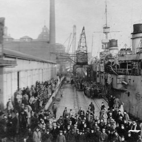 Efter 1. verdenskrig blev Danmark et transitland for op imod 100.000 evakuerede krigsfanger, primært engelske og franske soldater fra tyske fangelejre, der ankom på danske og udenlandske skibe. Soldaterne fik mad, tøj, lægehjælp og kulturelle oplevelser, så de kunne komme til kræfter, inden de kunne vende hjem. To af de havne i København, der blev omdrejningspunkt i hjemsendelsen af krigsfangerne, var Frihavnen og Langelinie.
