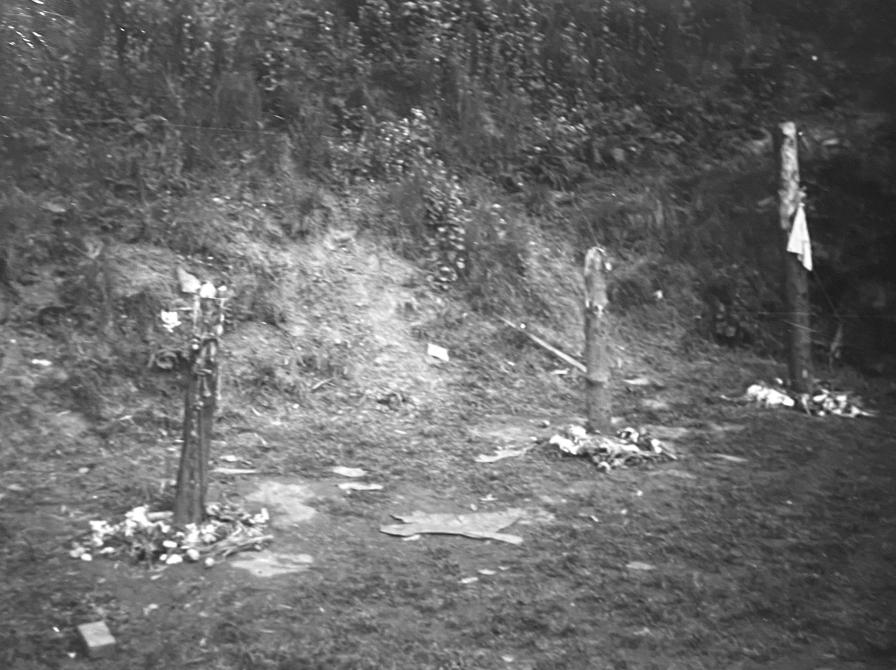 I området fandt man også en skydebane med tre henrettelsespæle. To af pælene var skudt halvt over – lige i hjertehøjde. Den tredje pæl var også skudt godt i stykker, men stod dog stadig i fuld højde. Snore med hvide klude hang på pælene eller lå på jorden. Dem havde de dødsdømte om halsen, så de tyske soldater havde et mål at sigte efter. Fundet gjorde stort indtryk på både modstandsfolkene, der opdagede området, og de besøgende, der kom i tiden efter og lagde blomster. Pælene fik en nærmest hellig status, og selvom dette område forblev på militærets område, blev skydebanen behandlet med stor respekt.