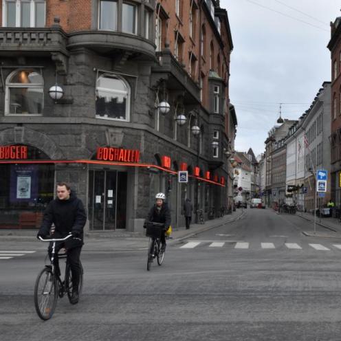 Vestergade set fra Rådhuspladsen / Vester Voldgade. Foto: Sune Hundebøll, 2021.