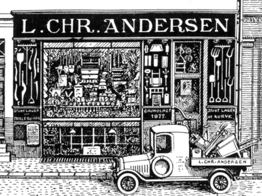 I 1927 fejrede L. Chr. Andersen forretningen 50-års jubilæum. Virksomheden startede i en kælder i Vestergade 33 hvor Peter Andersen solgte trævarer og isenkram.