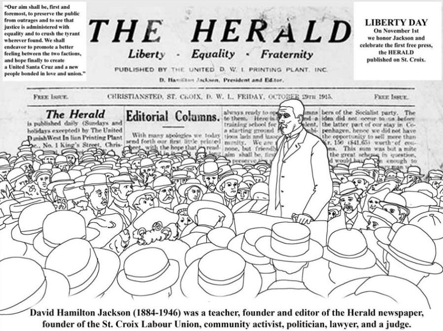 Det første ordinære nummer af den engelsksprogede avis The Herald udkom 1. november 1915. Jackson havde fået sin trykpresse til Christianssted, og den første, ucensurerede avis fortalte stolt, at den skulle være en avis for folket og at det var folket, der skulle styre, de skulle ikke styres af ’a few selected bosses’.