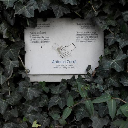 Hvor Blågårdsgade ender ved Åboulevarden, er opført et parkeringshus. På huset ses en mindetavle for den italienske turist Antonio Currà, der blev dræbt i august 2003.