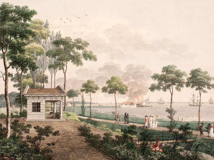 Udsigt af den offentlige promenade af Hr. Conferenceråd Classen anlagt uden Københavns Østerport. Ill: Søren L. Lange/SMK Open, 1803.