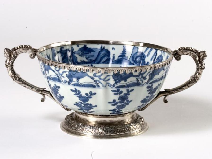 Fra ca. 1700 stammer seks par kinesiske kopper, der blev bestilt i Kina med en dekoration af Frederik IVs navnetræk og kronede løver. Forunderligt nok er de underkopper, som kopperne står på, japanske.