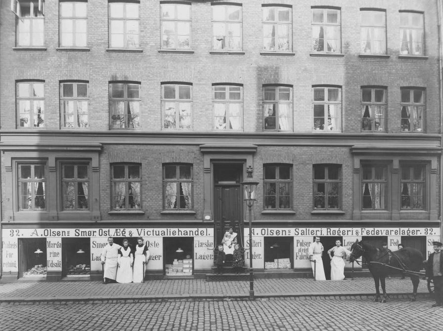 Det undrer mig, at ingen af de forfattere, som jeg har læst, og som har skildret livet på Nørrebro ved århundredskiftet, har omtalt, at der var en kostald på hjørnet af Korsgade og Murergade med indgang fra Murergade. Køerne stod i båse på I. sal året rundt og kom altså aldrig på græs. Jeg husker, jeg spurgte Mor, hvordan man havde fået køerne derop, men jeg husker ikke svaret, Jeg husker, vi hentede mælk søndag formiddag. Så kom vi med vores blå emaljerede mælkespand med låg.