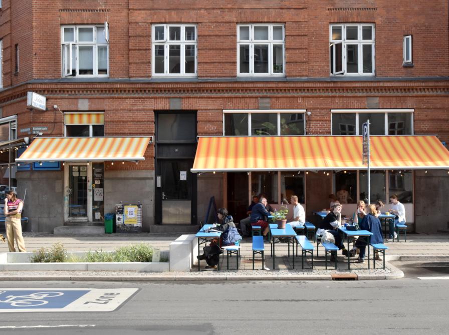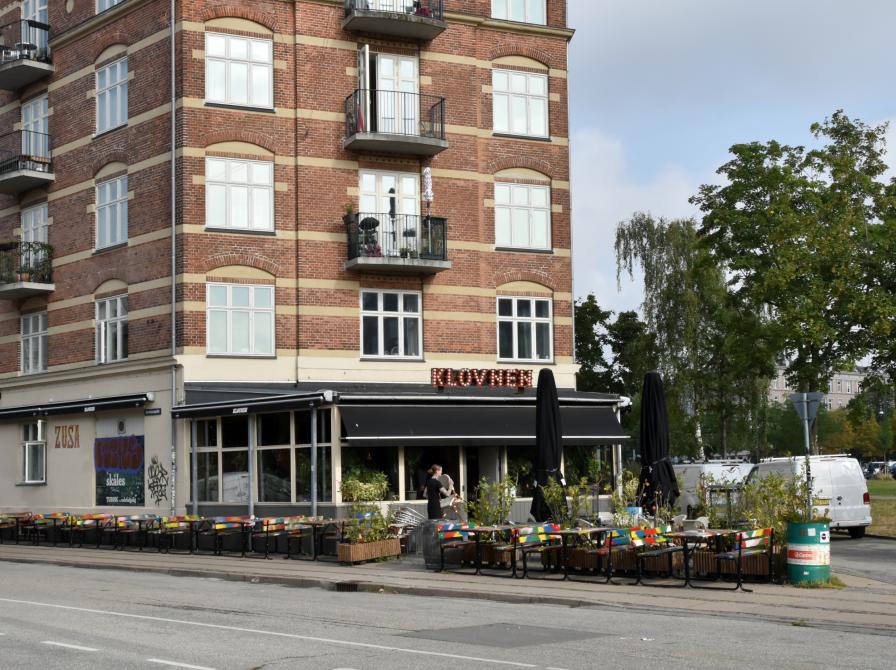 Tilbuddene om mad og drikke er mange i Rantzausgade. Nær Nuuks Plads ligger Klovnens Bodega.