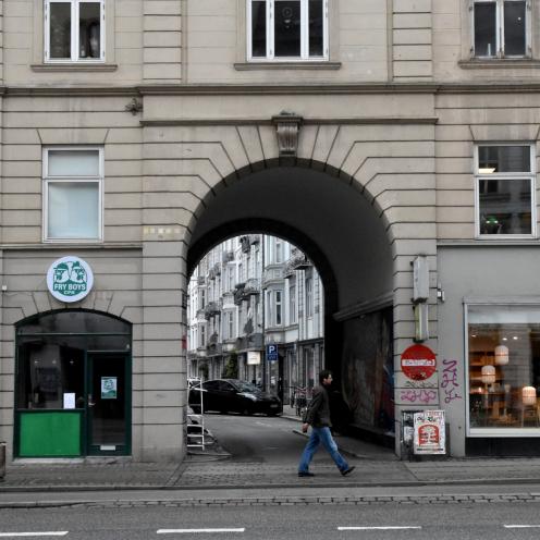 En gade på Vesterbro: Mellem Vesterbrogade og Matthæusgade finder du Westend. Adgang til Westend fra Vesterbrogade er lidt speciel, da du skal gennem en port i Vesterbrogade 65.