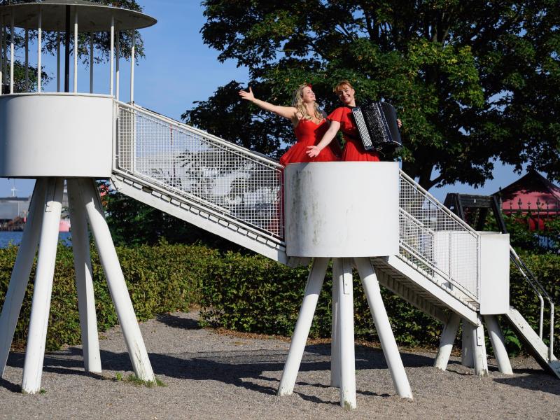 BibliotekshusetAlmindeligvis optræder operaduoen Nickie og Julie for familier på legepladser, men her i vinterkulden rykker de inden døre i børnebiblioteket, hvor de mellem kl. 11 og 13 vil give 3 små spontane operaoplevelser i biblioteksrummet.