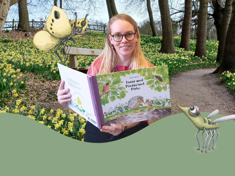 Brønshøj BibliotekVi mødes i den lille have ved rytterskolen overfor biblioteket. Efter en fællessang, som alle kender, læser bibliotekaren højt om pindsvinet Pirke.