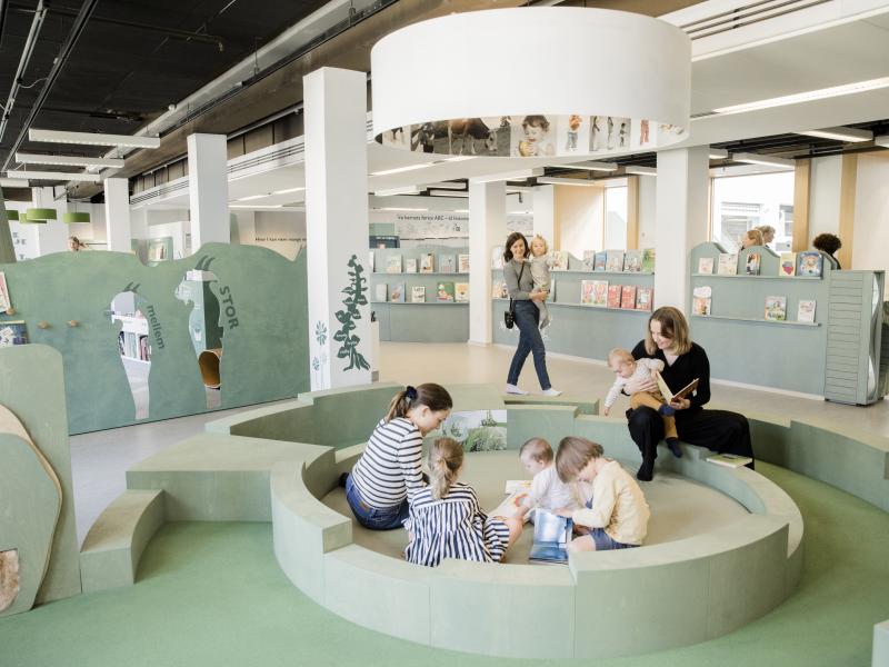 Børneetagen LÆS kobler krop, hjerne og bøger. Etagens unikke design er baseret på hjerneforskning og bygger på tanken om, at bevægelse og aktivitet er så fundamental for børn, at man kan sige, at de tænker med kroppen. Zonerne følger derfor barnets sproglige udvikling og kombinerer sproget med motorik og sanser undervejs – og erfaring viser, at jo mere kroppen er involveret, jo bedre husker vi.