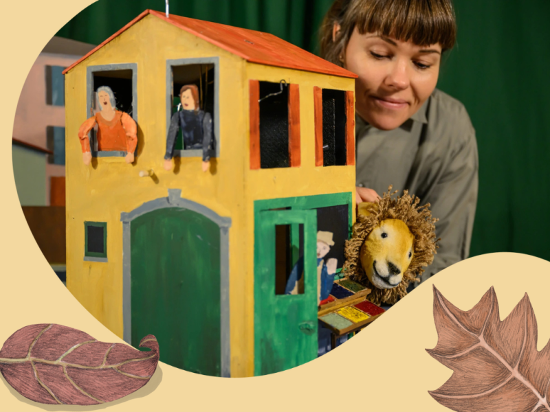 En varm og vittig dukketeaterforestilling for de små, bygget på Louise Fatios bog Den Glade Løve.