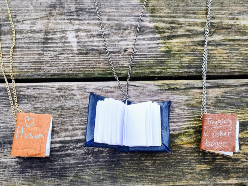 Natasha kommer med sit pop-up værksted og laver helt unikke mini-bøger, hvor man selv vælger hvilken farve fra bunken af genbrugs-restelæder, ens bog skal indbindes i.