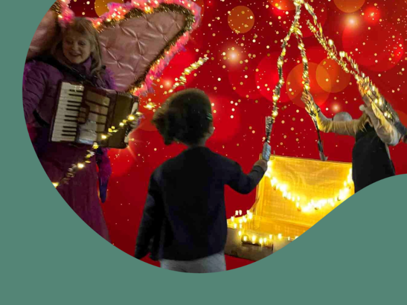 Kom og lad os fejre vintersolhverv og julen med Den Pink Jule-engel og hendes lysende kuffert.