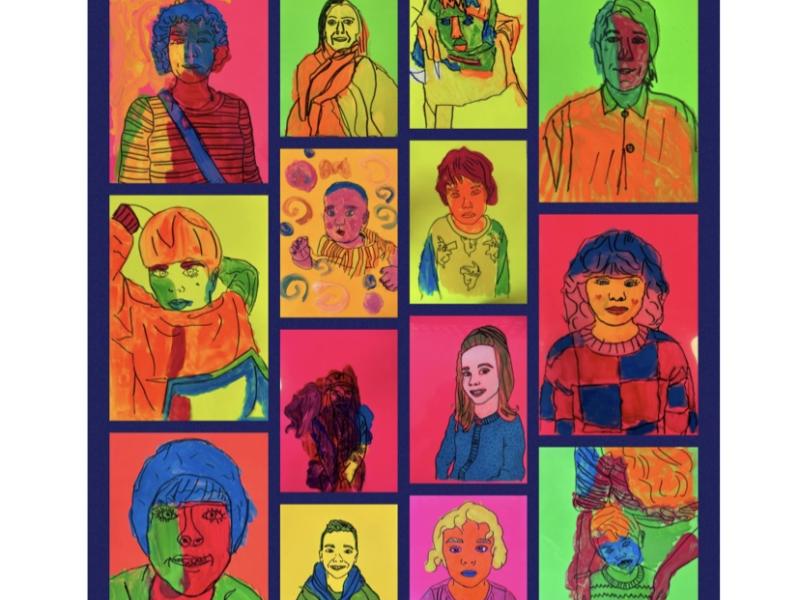 Lav dit portræt i stærke farver: Tegn + mal + lag på lag. Det bliver flot og unikt! Og så kan du tage med hjem.