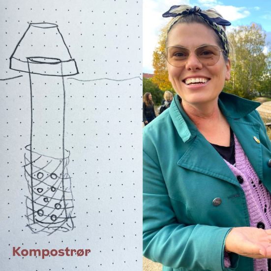 Sydhavnens BibliotekKurven bruges til at samle blade og græsafklip - direkte føde til kompostrøret. Ingen erfaring nødvendig. Metoden er hentet fra permakultur og handler om at arbejde med naturens egne processer.