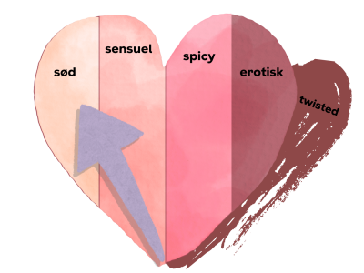 Vil du med helt ind i soveværelset, op på høstakken eller ind på bilens bagsæde, mens solen går ned over havet? Eller trives du bedre med antydningens kunst? Vi har udviklet et spice-o-meter, så du sikkert kan begive dig ud i romance-litteraturen og få lige nøjagtig så røde kinder, som du selv ønsker.10. juni 2025