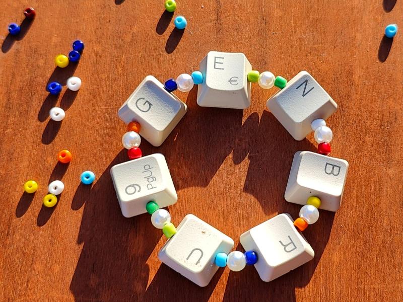 Vi laver seje smykker af gamle spillebrikker, computertaster, ødelagte smykker, dimse-dutter, plastic-legetøj og en masse perledonationer. Hvis man ikke er så meget til en halskæde, kan man lave en sej nøglering til jakken eller skoletasken. Alle brætspilsnørder, genbrugs-elskere og folk der elsker perler, bling og fantasi er velkomne. Hvis man har en lille plastic figur, spillebrik, kinderæg-figur som man synes kunne være sejt at lave til smykke, så tag den med. Natashas fikse hænder og lille smykkebor kan lave hul i den.